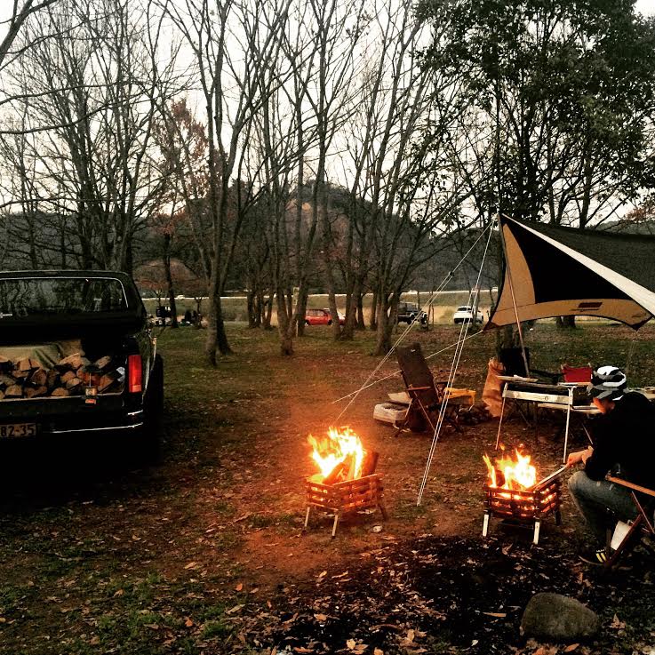 皆で焚火を囲み