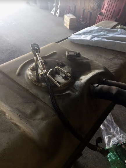 GASタンクを降ろしてからの交換作業、、、しかしアメリカ車はタンクがでかい、、、