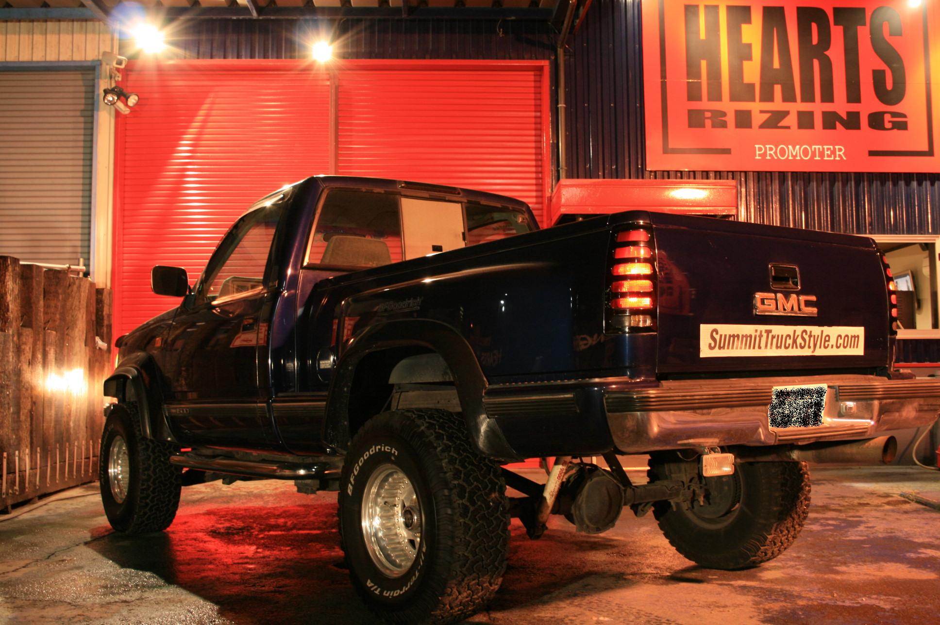 GMC K-1500 ステップサイド 税込価格:128万円 年式:1994年 走行距離:10万㎞ 車検:19/5 カラー:ブルーM ミッション:CAT 排気量:5700cc 修復暦無 左ハンドル AC PS PW CD センターラインAW リフトアップ 社外マフラー サイドステップ バイパーセキュリティ