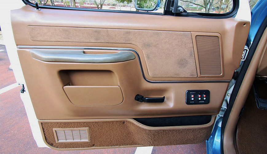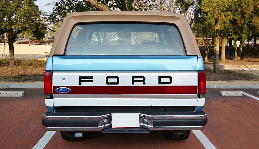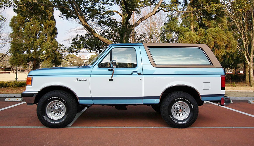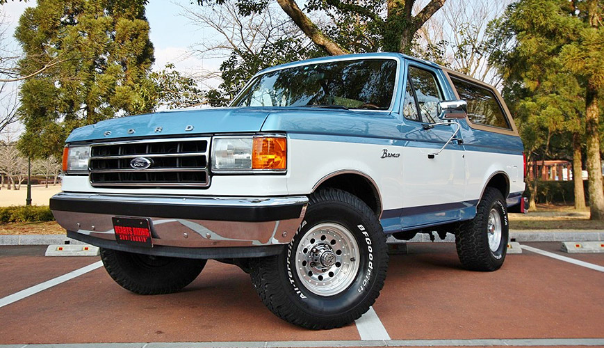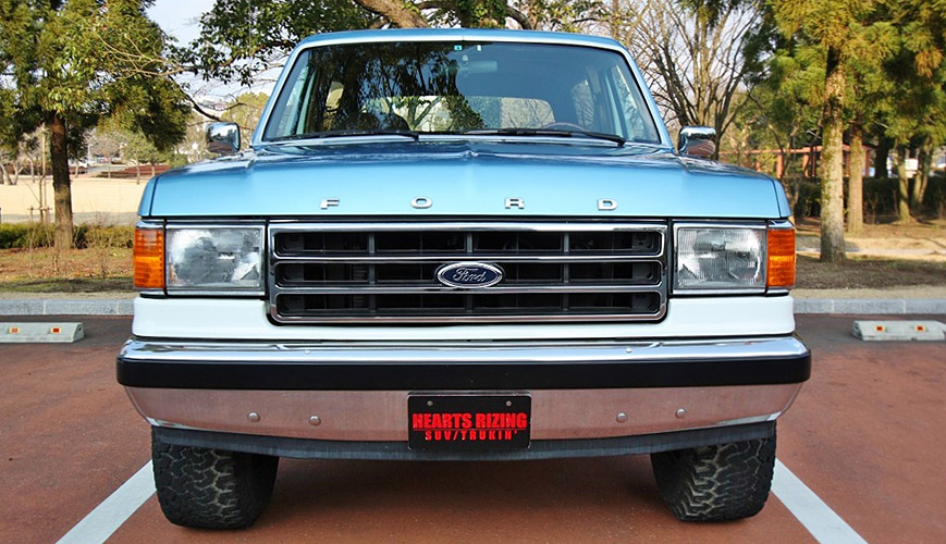 日本で良く目にするのはファイナルモデルだが現車はひとつ前のモデル。FORD純正AWに少し大きめのオールテレーンを履かせ絶妙なバランスの街乗りスタイルに。ボンネットの「FORD」、Fフェンダーの「Bronco」のエンブレムが非常に渋い。最上級グレードのエディバウワーでモケットシートの背もたれには洒落たデザインが刺繍される。GM系のV8とは少し違うフィーリングのパワートレインは5800cc、V型8気筒の電子制御フューエルインジェクションを採用。四季がある日本で何の心配もなく可愛がれるアメ車四駆の一台だ。